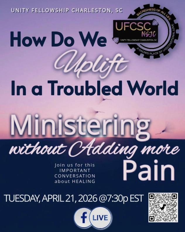UNITY FELLOWSHIP - CHARLESTON IS AN OUTREACH MINISTRY LOCATED IN THE HEART OF CHARLESTON, SOUTH CAROLINA. WE HAVE BEEN CALLED NOT ONLY TO SERVE OUR COMMUNITY, LGBTQIA+ BUT ALL OF GOD'S CHILDREN. OUR MISSION IS SIMPLE, LOVE.